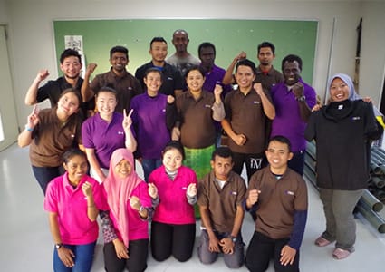 オイスカ西日本研修センターで農業を学ぶ世界の若者(東南アジア各国から、マレーシア、インドネシア、パプアニューギニア、モンゴル等いろんな国々からの若者が集団で生活しながら、農業や食品加工を勉強しています。)