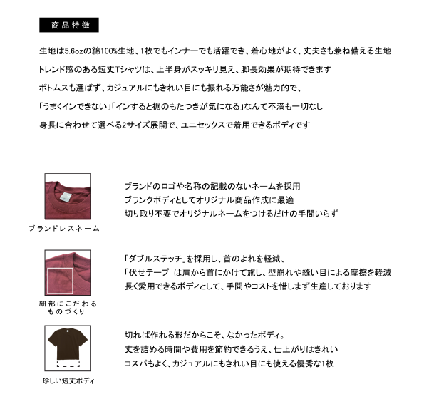J6500C ハイグレードコットンクロップドTシャツ綿100%